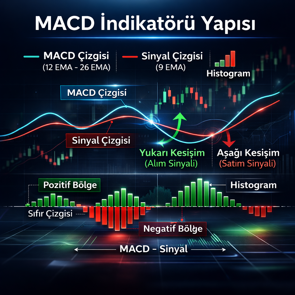 MACD indikatörü; trend yönünü, momentum değişimini ve potansiyel alım–satım sinyallerini analiz etmek için kullanılan güçlü bir teknik analiz aracıdır. Bu yazımızda MACD’nin ne olduğu, nasıl hesaplandığı, nasıl yorumlanması gerektiği ve avantaj–dezavantajları detaylı şekilde ele alınmaktadır. Keyifli okumalar dileriz